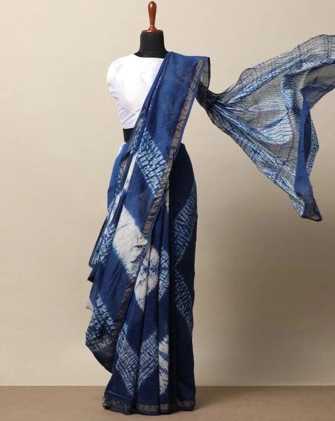 Elegant Indigo Shibori Printed Cotton Saree with Border