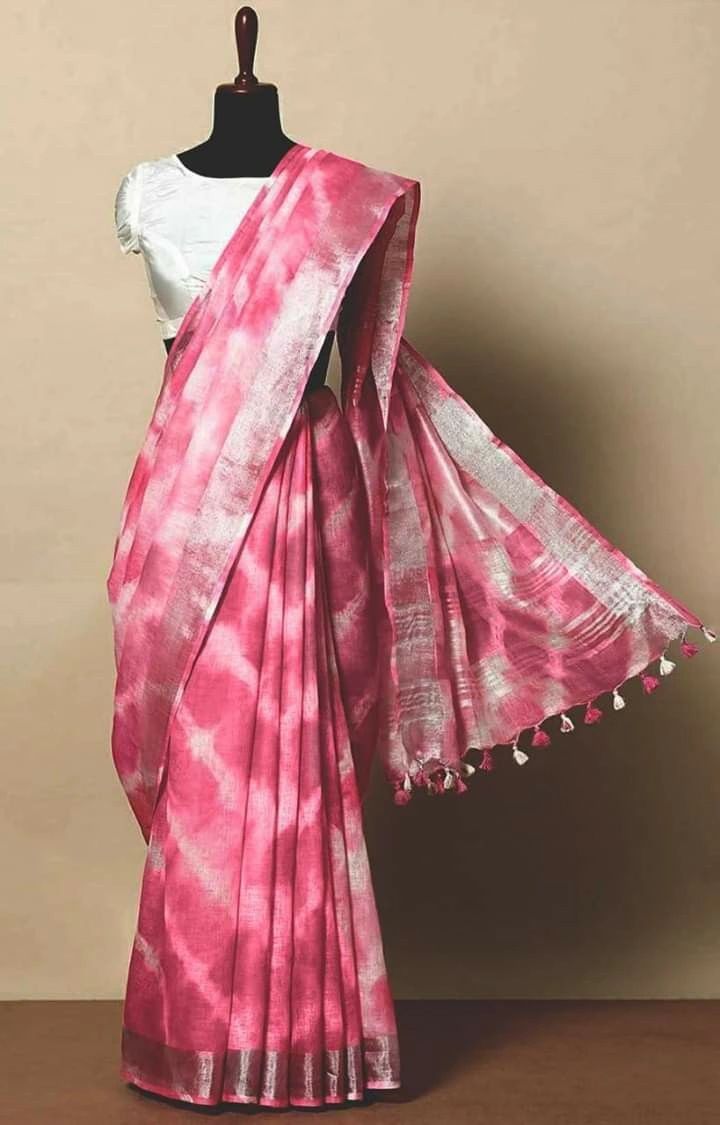 Elegant Pink Shibori Tie-Dye Cotton Saree with Tassels