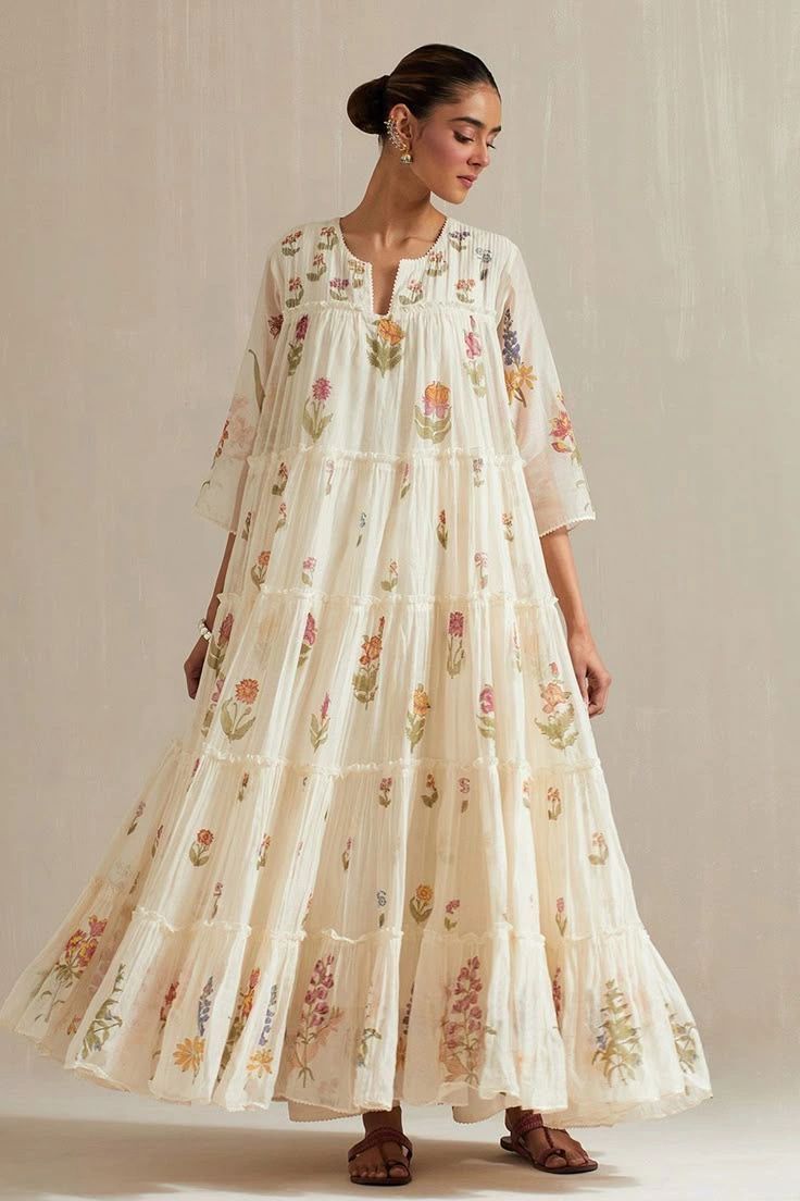 Elegant Floral Tiered Maxi Dress (Premium Ethnic Gown)