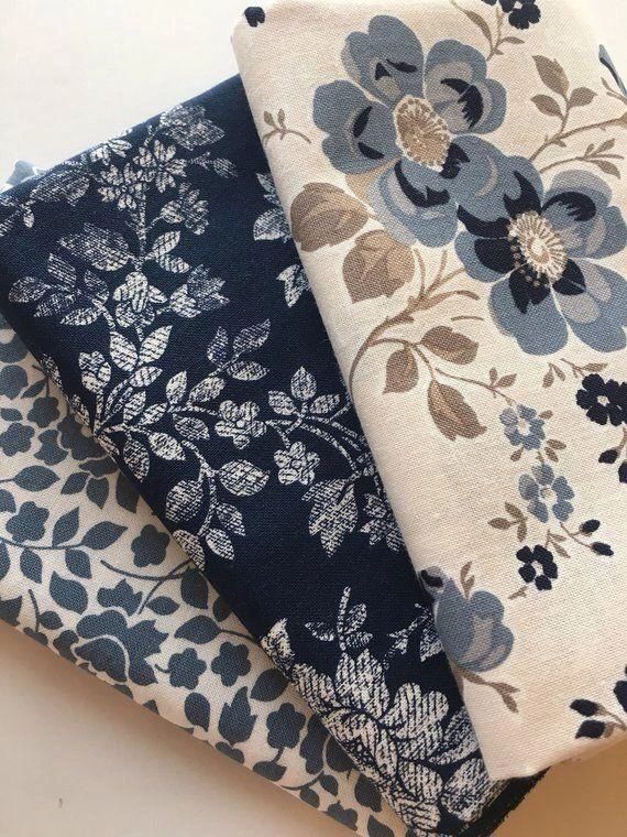 Elegant Blue Floral Printed Cotton Fabric Combo (Set of 3)